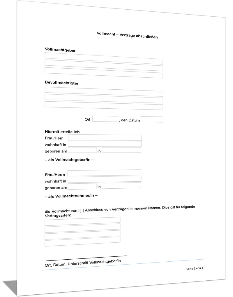 Vollmacht für Vertragsabschluss Muster anfordern